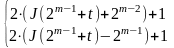 Если сгруппировать значения n по степеням двойки (в таблице эти группы отделены сплошными вертикальными линиями), то в каждой группе F(n) имеются еще две группы (см. таблицу). Поэтому решение рекуррентного соотношения должно иметь вид для n > 1: