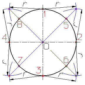 Деление окружности на восемь равных частей.