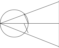 Точка Р – внутри базисной окружности. Тогда построение выполняем в обратом порядке.