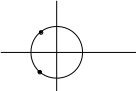 Если А лежит на действительной оси, то у окружностей также больше нет общих точек, поскольку центр их лежит на этой оси, и если есть еще одна общая точка В (не лежащая не действительной оси, иначе окружности банально совпадут), то есть еще одна общая точка – симметричная ей, и у окружностей есть три общие точки, то есть они все совпадут, что невозможно.