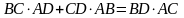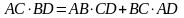 Теорема Птолемея. Для всякого четырехугольника ABCD, вписанного в окружность, верно
