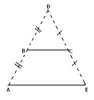 Продолжим прямую АВ за точку В и отложим на ней точку D на расстоянии АВ от точки В (рис. 1). Продолжим прямую CD за точку С и отложим на ней точку Е на расстоянии CD от точки С. Тогда отрезок АЕ будет параллелен отрезку ВС, являющемуся средней линией треугольника ADE. Предложенный способ выгодно отличается от множества других способов, опирающихся па измерение углов или на деление отрезка пополам.