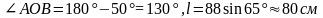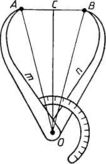 б) У мерного циркуля фабричного изготовления r = 44 см, угол между кромками т и п в сомкнутом состоянии равен 50°. Какова максимальная величина, которую можно измерить этим циркулем?
