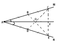 На местности обозначены три точки А, М и N, не лежащие на одной прямой. Проложить биссектрису угла MAN?