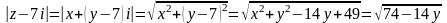 Воспользуемся геометрическим смыслом модуля комплексного числа. Как известно, для комплексных чисел