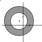 Левая часть двойного неравенства задает область, лежащую вне круга с центром в точке K(–0,5; 0,5) и радиусом 1. правая часть задает круг с центром в точке K и радиусом 2. В каждом случае граница не включается в заданное множество. Искомое множество точек изображено на рис. 23.