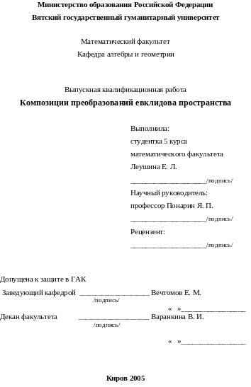 В дальнейшем будут рассматриваться композиции преобразований евклидова пространства.