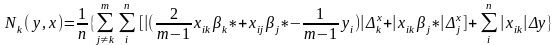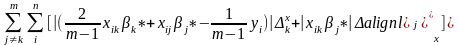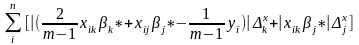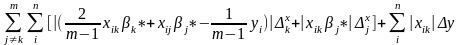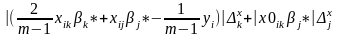 pod_sum_vnutr[i]:=abs(2*matrica_X[i,k]*vector_beta[k,1]/(m-1) +matrica_X[i,j]*vector_beta[j,1]-vektor_Y[i,1]/(m-1))*pogr_X[k] +abs(matrica_X[i,k]*vector_beta[j,1])*pogr_X[j]