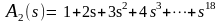 Выпишем многочлен А2(s), описывающий двузначные числа. Коэффициент при sn в многочлене А2(s) равен числу двузначных чисел с суммой цифр n. (Мы рассматриваем и такие двузначные числа, в которых первая цифра или обе цифры могут равняться нулю). Степень многочлена А2 равна 18 (это наибольшая возможная сумма цифр двузначного числа):