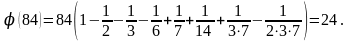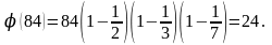 Пример. Пусть n=84. Простыми делителями 84 являются 2, 3, 7; поэтому