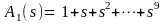 . Смысл у этого многочлена следующий: коэффициент при sn в многочлене А1 равен числу однозначных чисел, сумма цифр которых равна n. Другими словами, коэффициент при sn в многочлене А1 равен 1, если 0≤ n ≤9, и равен 0, если n>9.
