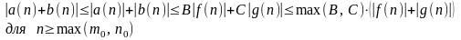 Любая функция из левой части имеет вид a(n) + b(n), и существуют константы m0, B, n0, C, такие, что