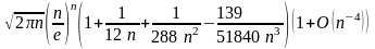 Абсолютная погрешность этой аппроксимации есть O(nn-3.5e-n). Абсолютная погрешность соотносится с числом верных десятичных цифр справа от десятичной точки, которые сохраняются после отбрасывания члена О; относительная погрешность связана с числом верных «значащих цифр».