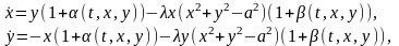 Замечание 5.2 Особый интерес представляет построение нестационарных систем, эквивалентных хорошо исследованной стационарной. Приведём пример такого построения. Как известно исследованию стационарных дифференциальных систем посвящено огромное количество работ. Это объясняется тем, что эти системы во многих отношениях являются более просто исследуемыми чем неавтономные системы. Если различные дифференциальные системы имеют одну и ту же отражающую функцию, то значит они имеют одно и то же отображение за период в том случае, когда эти системы периодичны. При этом следует учитывать, что качественное поведение решений дифференциальных систем с одной и той же отражающей функцией одинаково.