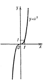 ) Функция y = x3 возрастает на всей числовой прямой. График функции y = x3 изображен на рисунке. Он называется кубической параболой.