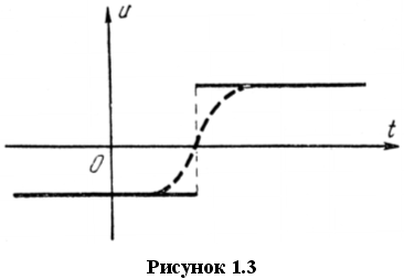 Оптимальные управления оказываются, в большинстве случаев, разрывными (т.е. содержащие скачки и переключения). Если разрывная функция, график которой изображен на рисунке 1.3 сплошной линией, представляет собой оптимальное управление, то, «сгладив» эту функцию (пунктир на рисунке 1.3), будет получена близкая к ней непрерывная функция. Но какая бы «близкая» к оптимальному управлению непрерывная функция ни была, всегда можно выбрать «сглаживающий» кусок еще более крутым и получить непрерывную функцию, еще более близкую к оптимальному управлению. Таким образом, в классе непрерывных функций просто не будет наилучшего, оптимального управления, а предельным случаем является кусочно-непрерывная функция, которая и является оптимальным управлением.