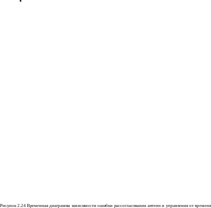 Для сравнения результатов были использованы данные, полученные в результате измерения выходных координат системы регулирования привода антенны, построенной с использованием ПИД-регулятора [3]. На рисунке 2.24 приведены зависимости ошибки рассогласования антенн (сплошная линия) и управления (пунктирная линия) от времени.