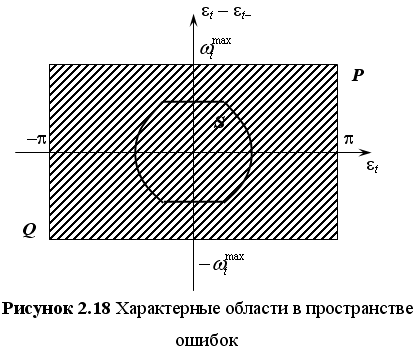Так как угол рассогласования не может превышать угла в 180, то и ошибка не может превышать этого значения. Таким образом, в базисе ошибок можно выделить вертикальную полосу шириной 2 ([–, +]), за границы которой ошибка по углу не может выходить. На самом деле, если ошибка