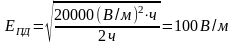 где ЕПД, HПД – предельно допустимая напряженность ЭМ и МП соответственно в В/м и А/м; ЭНЕПД и ЭННПД – предельные значения энергетической нагрузки за рабочий день по электрической и магнитной составляющим и равным соответственно для частот 0,06 – 3,0 МГц 20000 (В/м)2·ч и 200 (А/м)2·ч; Т – время воздействия, ч.
