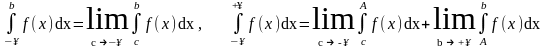 Аналогично определяются несобственные интегралы на интервалах (-, b] и (-, +):