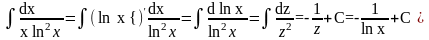 = d(ln x), производим подстановку ln x = t. Тогда J =