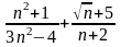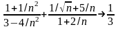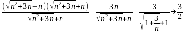 Решение. Применим теорему о пределе суммы и найдем предел каждого слагаемого. При n числитель и знаменатель каждого слагаемого стремится к бесконечности, и мы не можем непосредственно применить теорему о пределе частного. Поэтому сначала преобразуем xn, разделив числитель и знаменатель первого слагаемого на n2, а второго на n. Затем, применяя теорему о пределе частного и о пределе суммы, найдем: