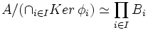 Также часто встречается следующая эквивалентная формулировка для колец, где Bi имеют форму A / Ii, φi являются естественными проекциями на A / Ii и требуется, чтобы Ii + Ij = A для любых