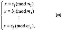 x x 0 (mod m 1 m 2 ...m k ) ,