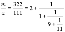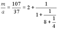 Эта цепная дробь, разумеется, конечна, так как m/a - рациональное число. Рассмотрим две ее последние подходящие дроби: