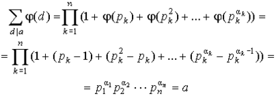 - произведение двух мультипликативных функций, первая из которых мультипликативна по лемме 2 пункта 13. Значит, ( a ) - мультипликативна.