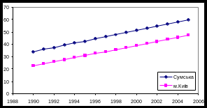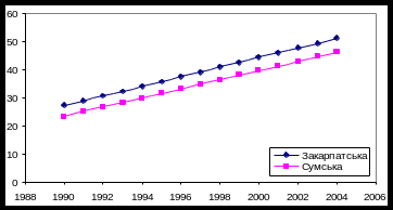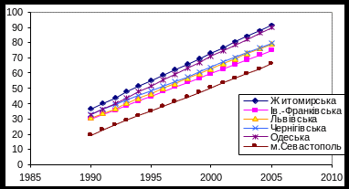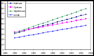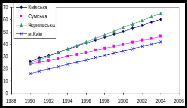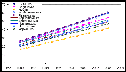 Рис 3.1.2. Тенденції росту захворюваності в областях північної України