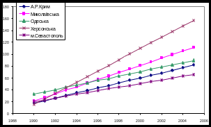 Рис 3.1.13. Тенденції росту захворюваності в областях південної України