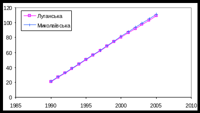 II. За критерієм збігу прямих проводилась перевірка збігу лінійних регресій в групах областей, в яких лінійні регресії виявились паралельними. За результатами перевірки захворюваність кількісно однакова в таких областях