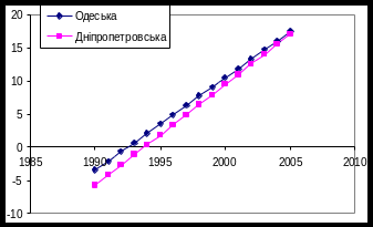 F = 0,002 < F0,05;1;28 = 4,2, тобто гіпотеза H0: β1= β3 не відхиляється – тенденція росту в цих областях однакова