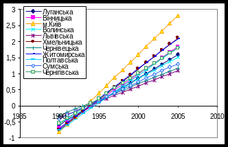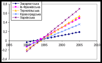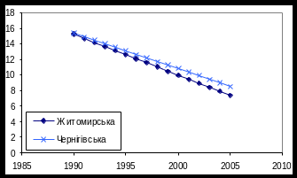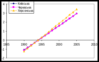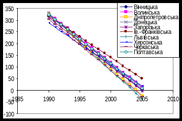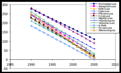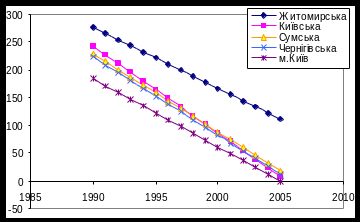 Рис 3.4.2. Тенденції спадання захворюваності в областях північної України