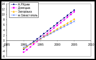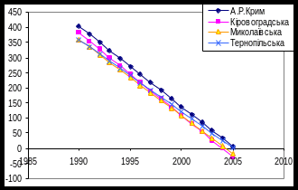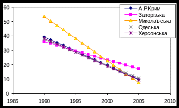 Рис 3.5.3. Тенденції спадання захворюваності в областях південної України