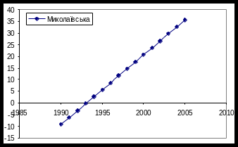 F = 0,183 < F0,05;2;42 = 3,22 – гіпотеза H0: β1 = β2 = β3 не відхиляється – тенденція росту в цих областях однакова. F = 0,109 < F0,05;4;42 = 2,59 – гіпотеза H0: α1 = α2 = α3 і β1 = β2 = β3 не відхиляється – лінійні регресії збігаються.