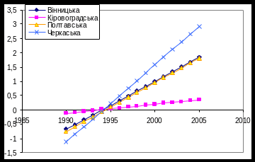 Рис 3.3.5. Тенденції росту захворюваності в областях центральної України