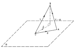 [Х] = Ω, де Ω - образ оператора X, тобто Ω = {у: у = Хх} для деякого х. Якщо змінювати значення вектора θ в межах Ω, то ||Y- θ||2 (квадрат довжини вектора Y- θ) досягає мінімуму при тому значенні θ =