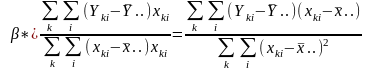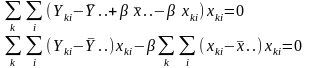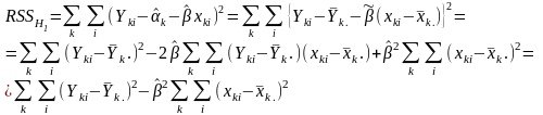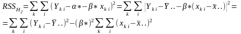 Для вирішення питання про збіг всіх K ліній регресії розглянемо гіпотезу H2: α1 = α2 = ... = αK і β1 = β1 = ... = βK, або, що те ж саме, H2: α1- αK = = α2 - αK = ... = αK-1 - αK = 0 і β1 - βK = ... = βK-1 - βK = 0.