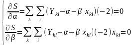 відносно α і β. Продиференціюємо S по αk та β