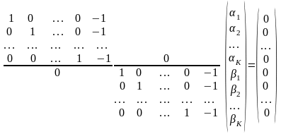 Матриця А має розмір (2K-2) рядків, 2K стовпців (ранг 2М – 2).
