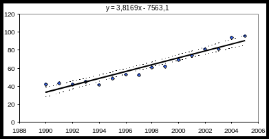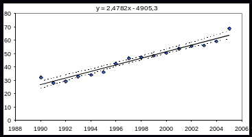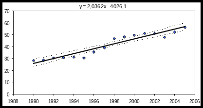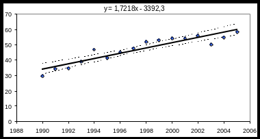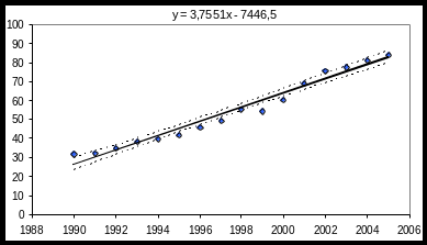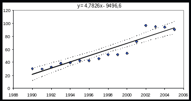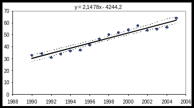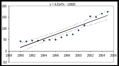 = 2,145 – гіпотеза H0:b1=0 відхиляється на рівні значущості α = 0,05.