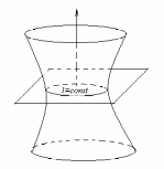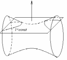 Наиболее грубое приближение к картине мирового пространства-времени в целом мы получим, если предположим, что материя распределена в пространстве–времени совершенно равномерно и, следовательно, пространство-время представляет собой псевдориманово 4-пространство индекса 3 постоянной кривизны. Если мы представим себе такое пространство в виде сферы вещественного или мнимого радиуса в псевдоевклидовом 5-пространстве соответственно индекса 4 или 3, а поверхности t =const также в порядке грубого приближения представим себе сечениями этой сферы параллельными плоскостями, то с течением времени «пространственное сечение» мира уменьшается или расширяется в зависимости от положения секущей плоскости. В первом случае кривизна «пространственного сечения» - постоянная положительная, во втором случае – постоянная отрицательная.