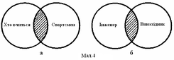 За змістом супідрядні поняття мають як загальні ознаки, що є ознаками родового поняття (родовими ознаками), так і специфічні, відображають особливості видових понять (ознаки видової відмінності). Якщо супідрядні поняття несумісні, то вони строго підкоряються всім правилам розподілу понять і тому, зокрема, не можуть бути тими, що перехрещуються (Мал.5,а). Але супідрядні поняття можуть бути і сумісними. В цьому випадку видові поняття, підлеглі загальному роду (члени супідрядності), можуть бути тими, що перехрещуються. Цей випадок схематично, зображений на мал. 5,б), з якого видно, що члени супідрядності можуть бути поняттями, що перехрещуються (поет може бути одночасне і романістом, і драматургом і т. д.).