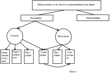 Рівнозначні поняття. Відношення рівнозначності (або тотожність) утворюється між поняттями, що відображають один і той же предмет, його зв'язки.
