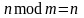 Дать определение бинарной операции «mod» и рассмотреть приложение этой операции;