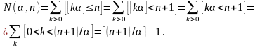 Число элементов в Spec(α/(α+1)), которые не превосходят n: