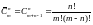 Формула числа сочетаний из m элементов по n элементов с повторениями имеет вид: (