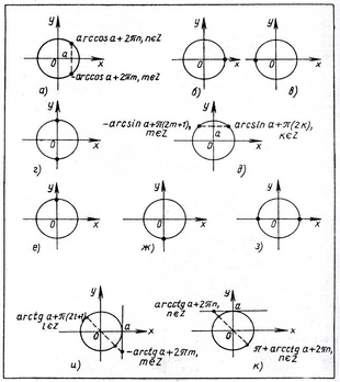 На эти уравнения следует обратить особое внимание, так как без умения их решать невозможно решить никакое другое тригонометрическое уравнение. Лучше всего, если учащиеся будут иметь схемы решения каждого из простейших уравнений